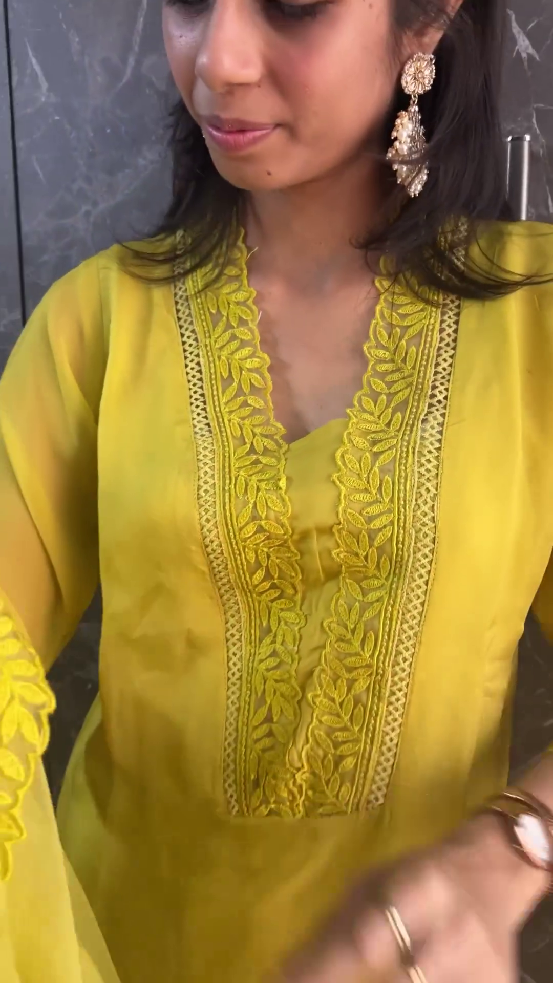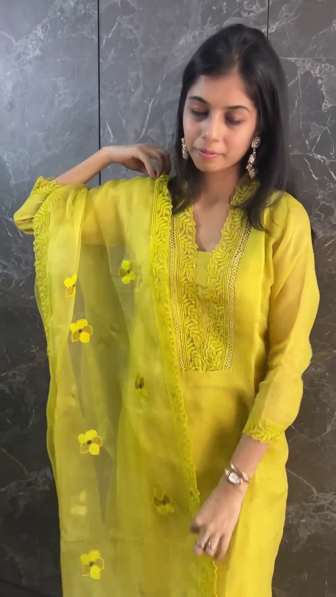 Designed with traditional Indian aesthetics in mind, this suit features elegant embroidery and detailing that enhance its ethnic charm. The kurta is paired with a matching salwar and dupatta, creating a complete ensemble that’s both modest and modern. Whether accessorized with floral jewelry for a Haldi function or with statement earrings for a festive celebration, this outfit is versatile and picture-perfect.